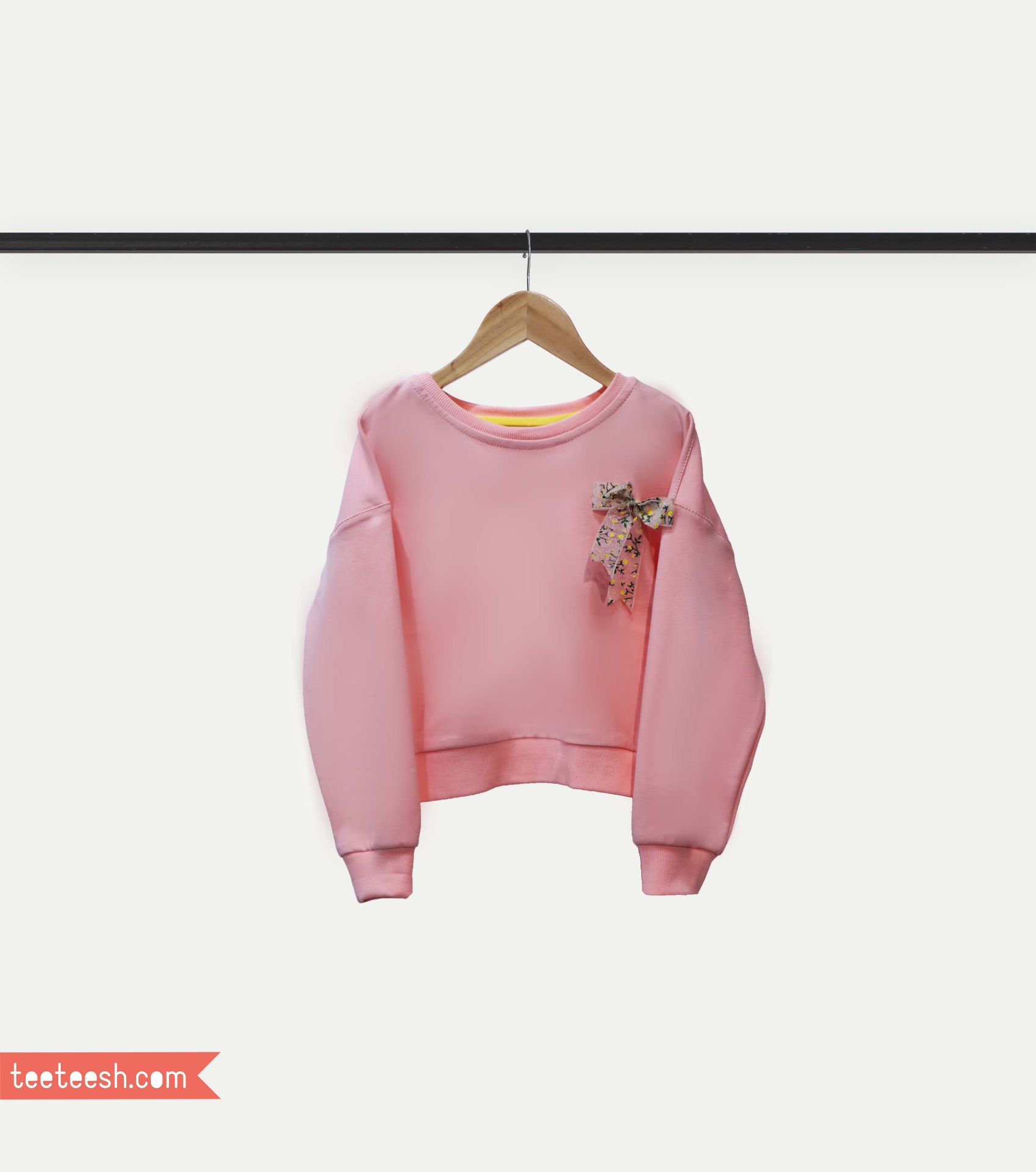 بلوز آستین بلند صورتی با پاپیون گلدار