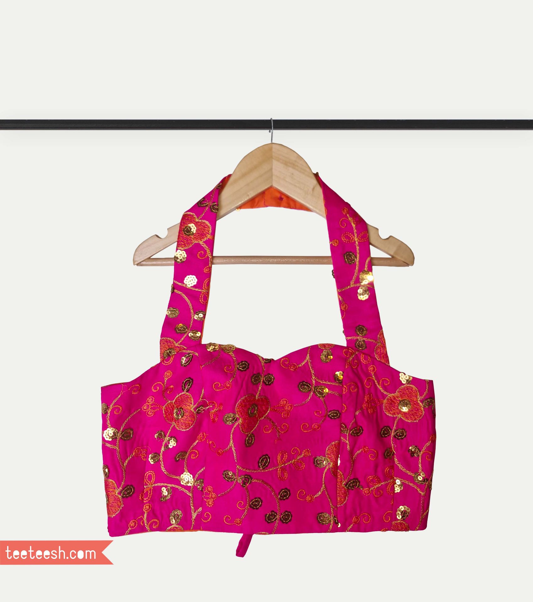 ست کراپ سرخابی و شلوارک طرح استیچ