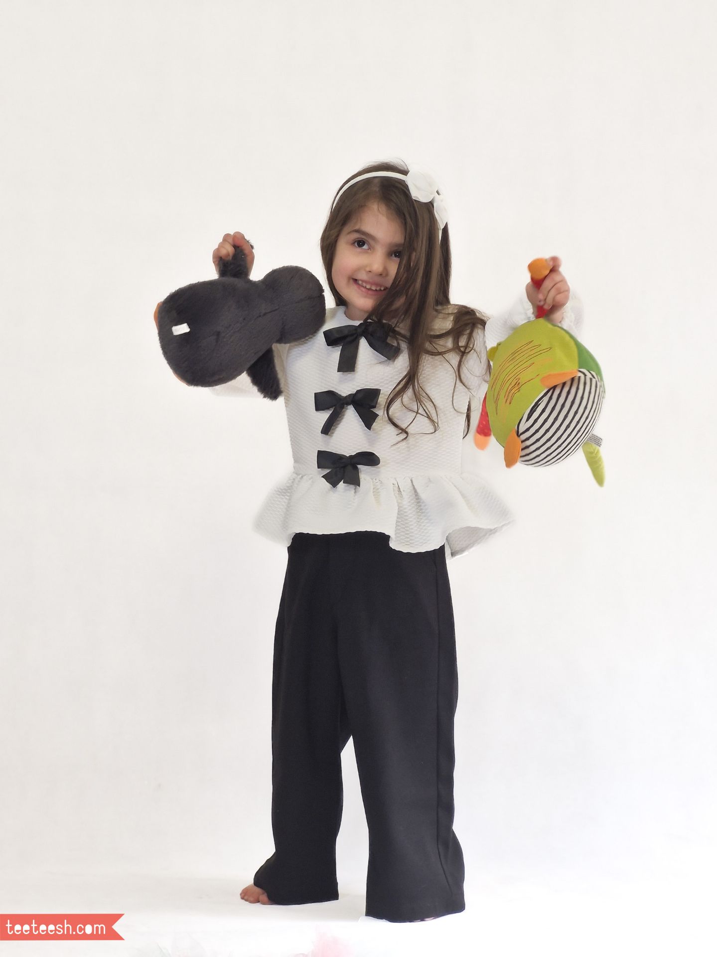 تونیک سفید ژاکارد لانه زنبوری با پاپیون مشکی