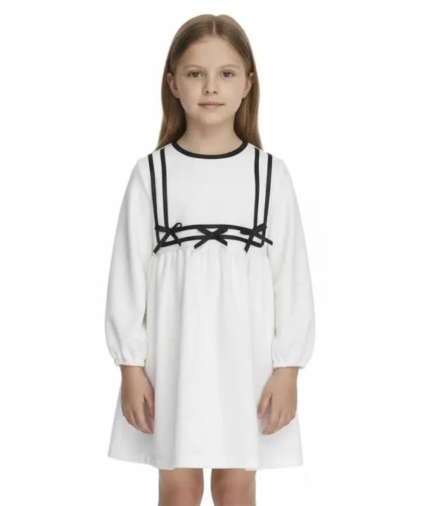 پیراهن سفید ژاکارد با پاپیون مشکی