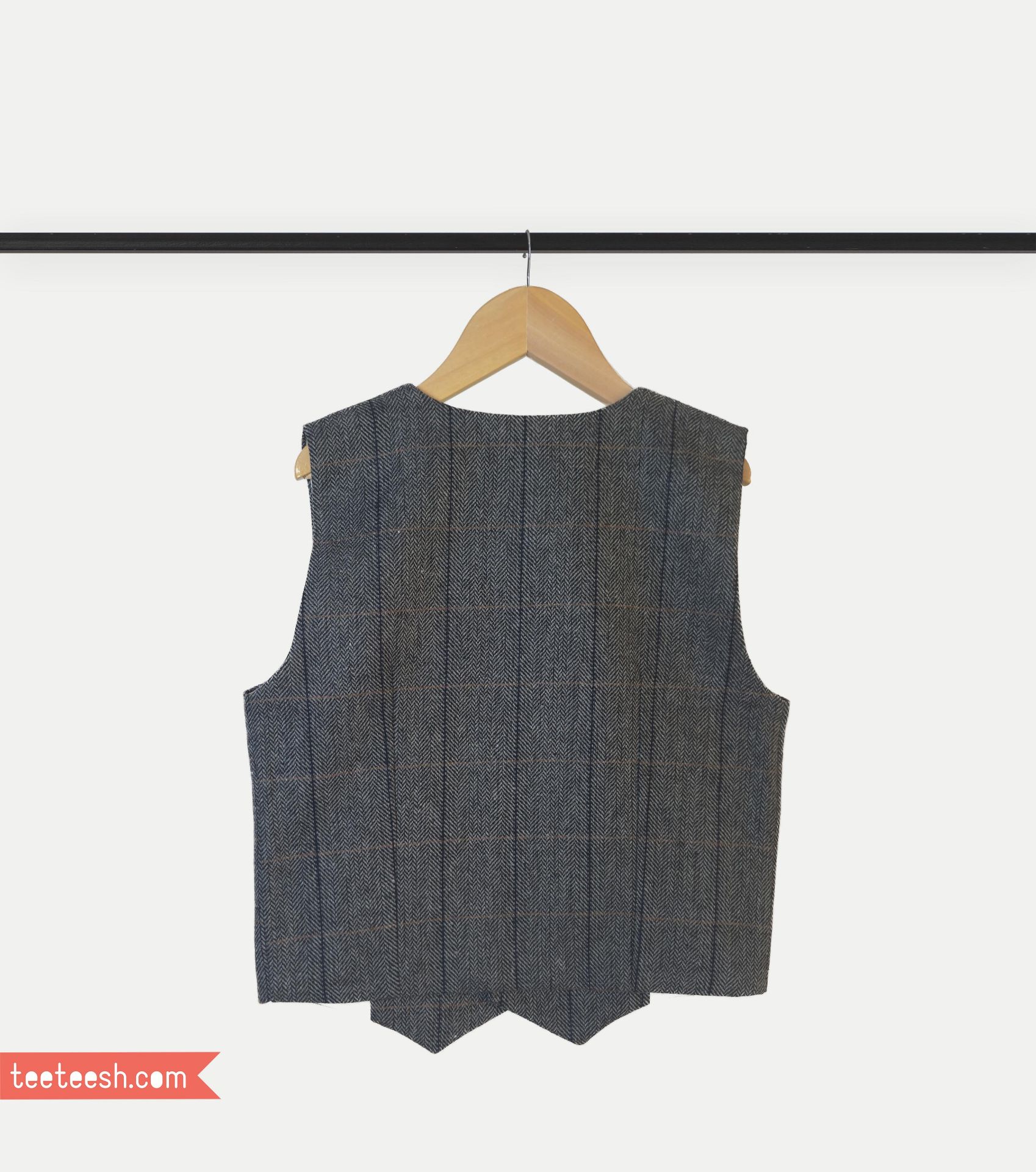 جلوی جلیقه باز است و بوسیله ی دکمه بسته میشود