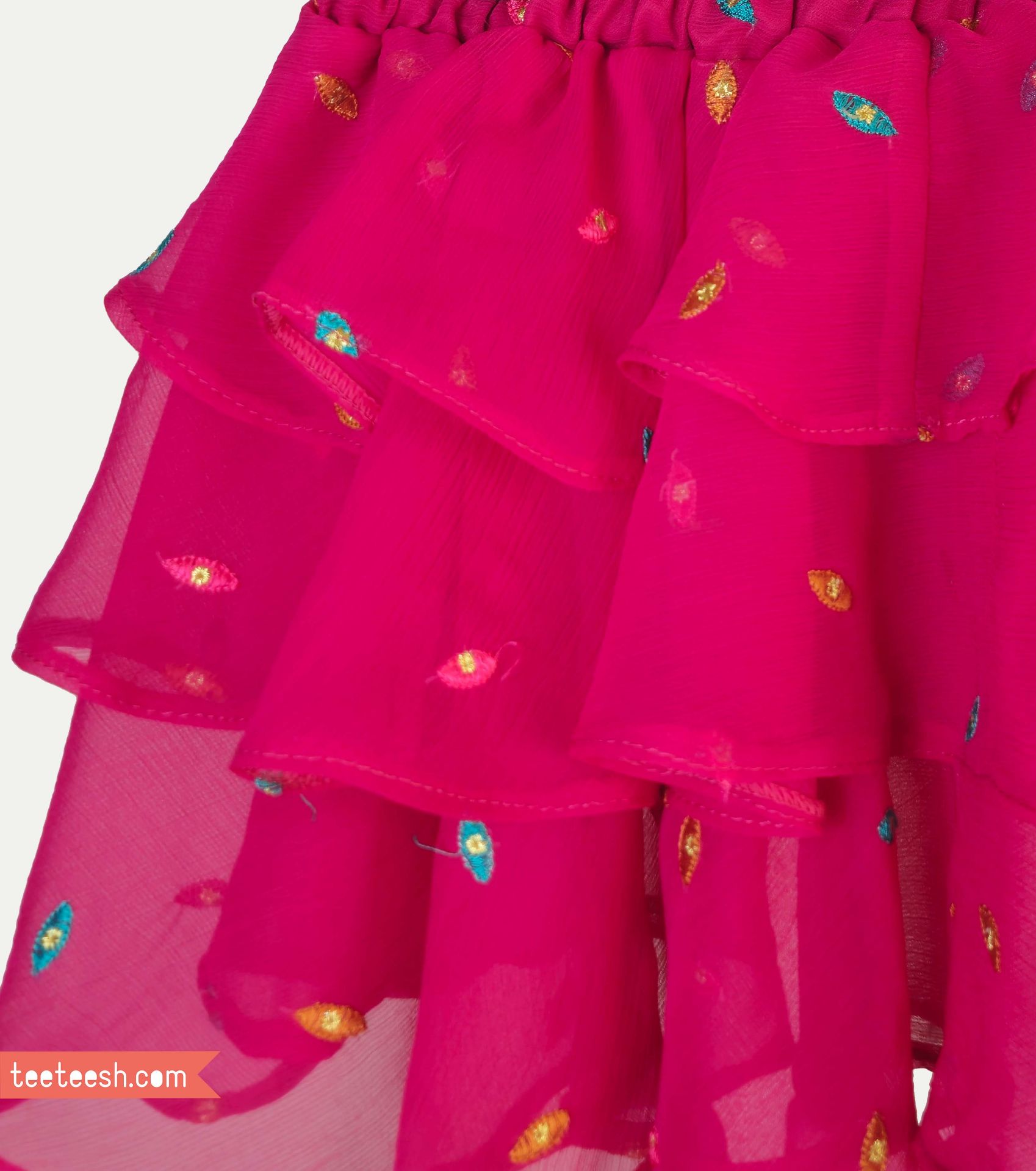 دامن حریر طبقه ای سرخابی