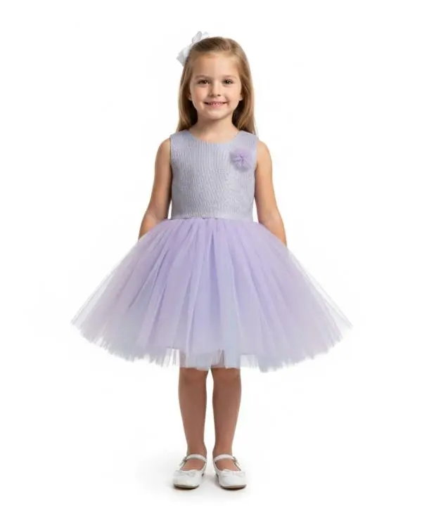 دامن بصورت کاملا پفی از چند لایه تور و آستر دوخته شده و روی آن مروارید پانچی کار شده است