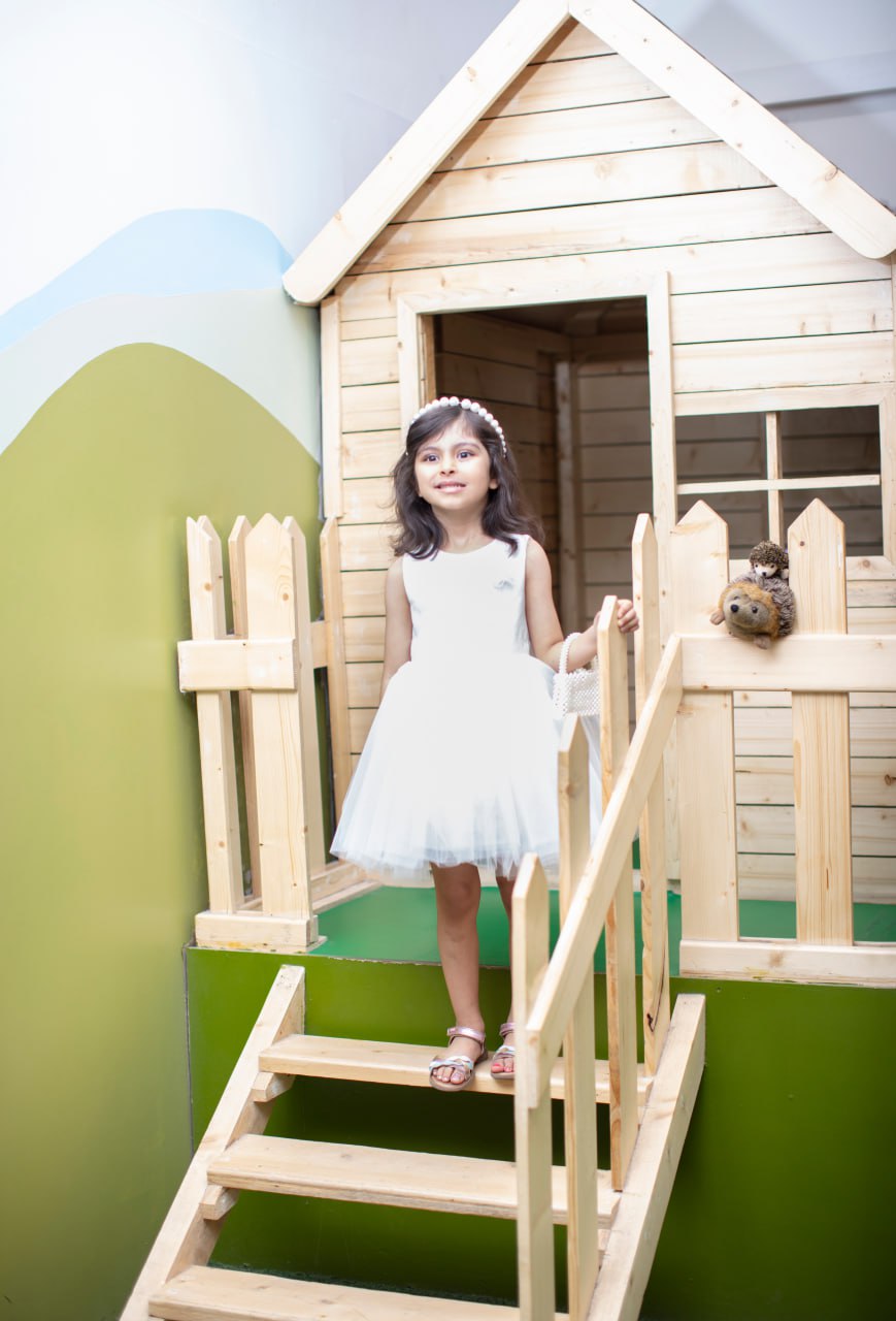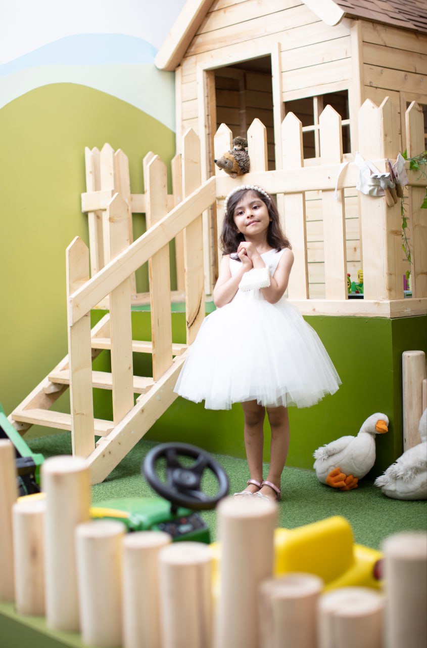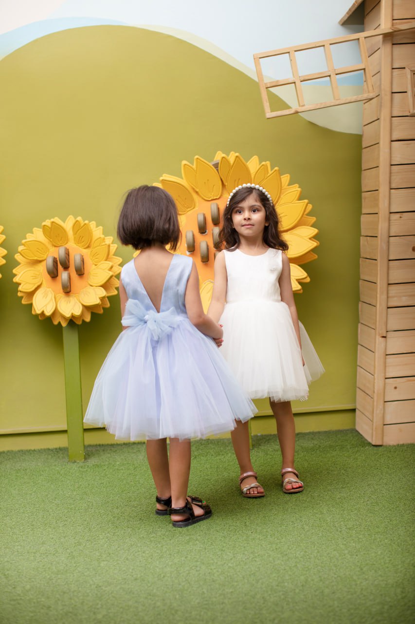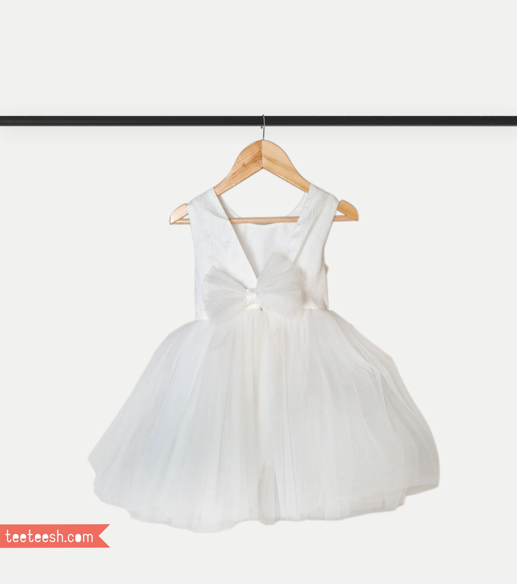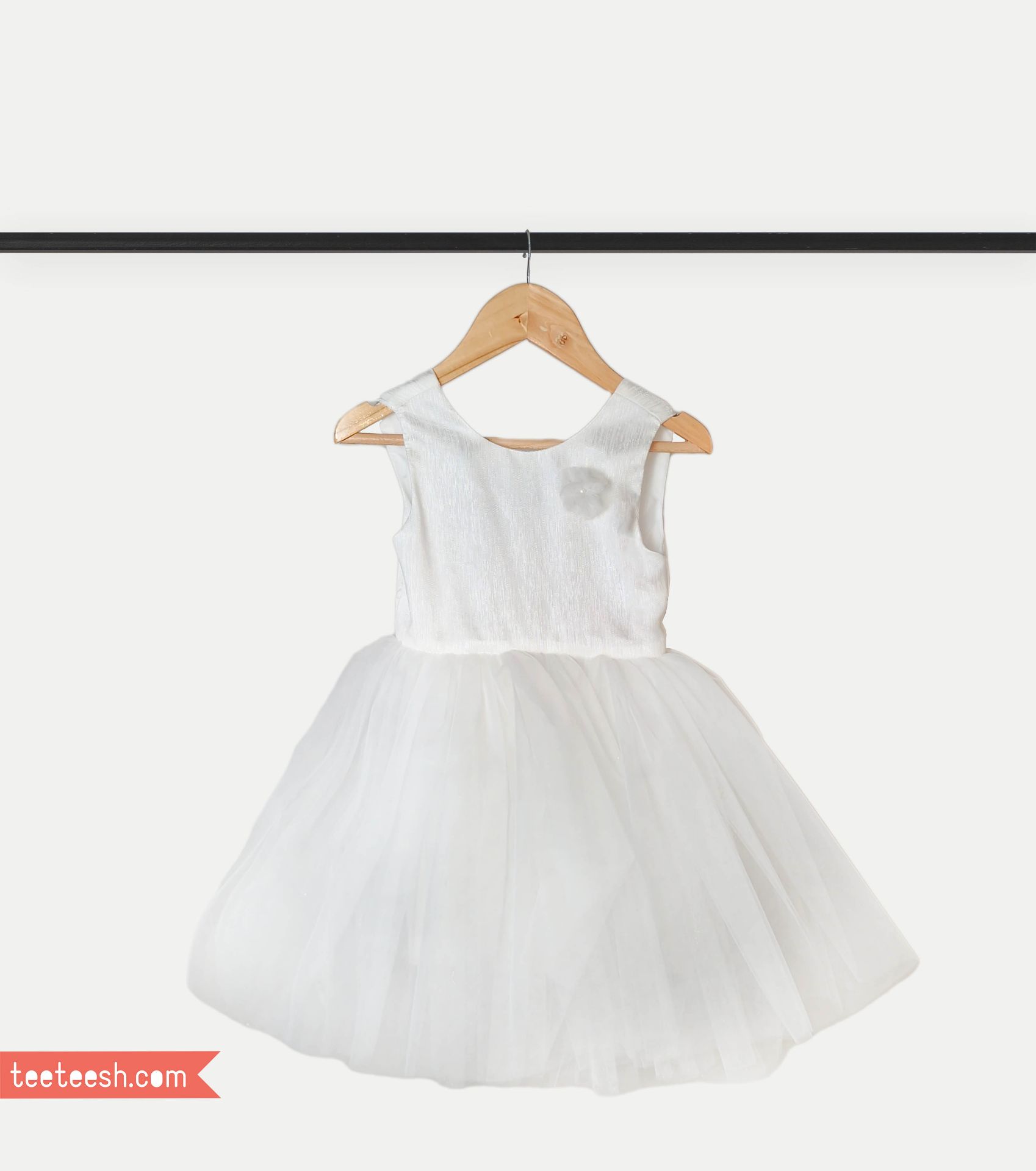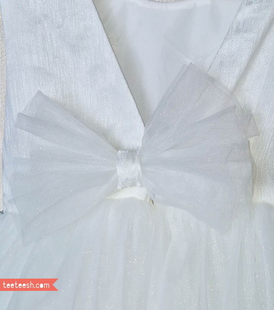 دامن بصورت کاملا پفی از چند لایه تور و آستر دوخته شده و روی آن مروارید پانچی کار شده است