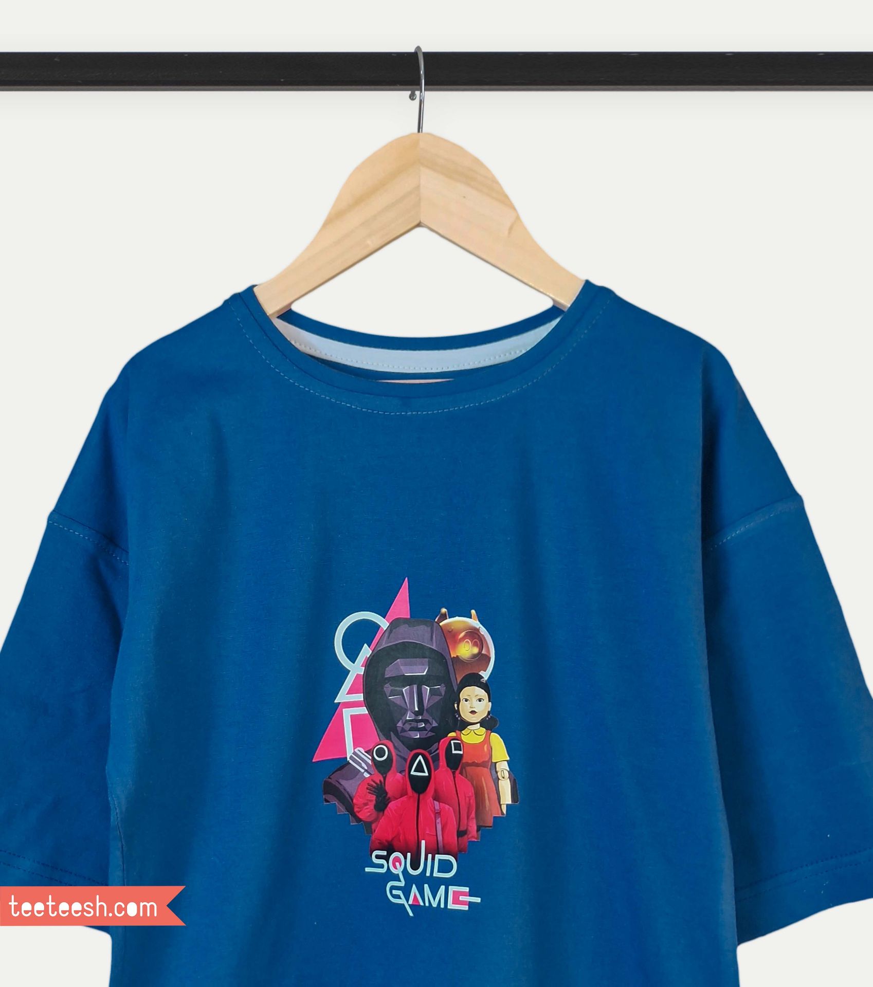 ست تیشرت آبی لانگ طرح اسکوییت گیم وشلوارک