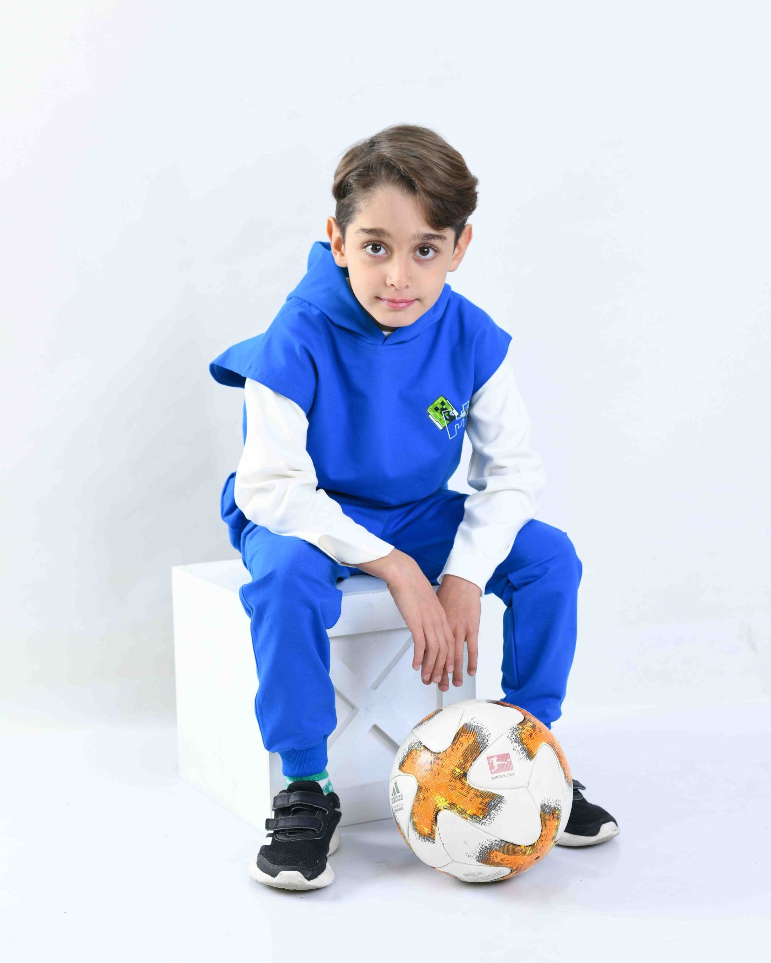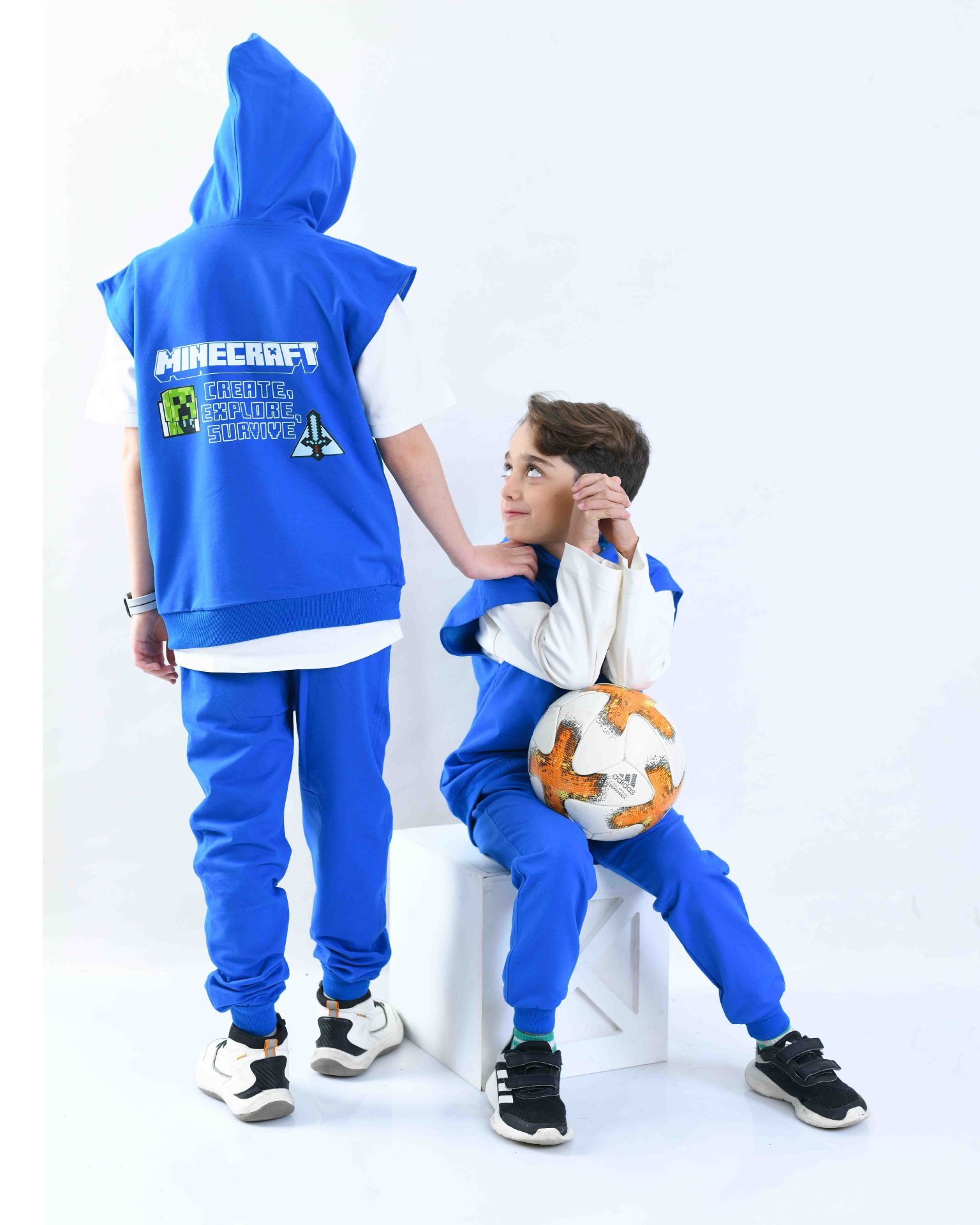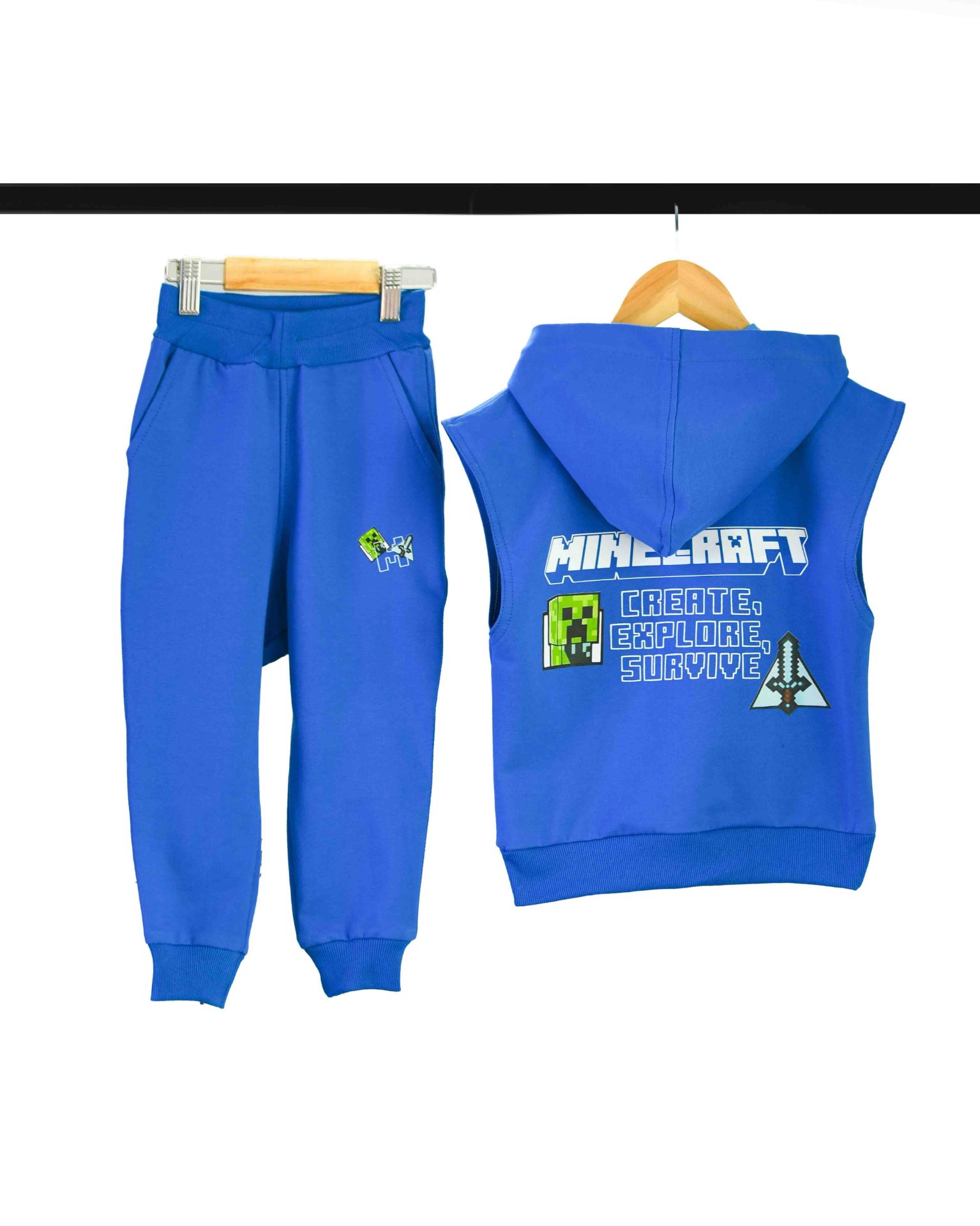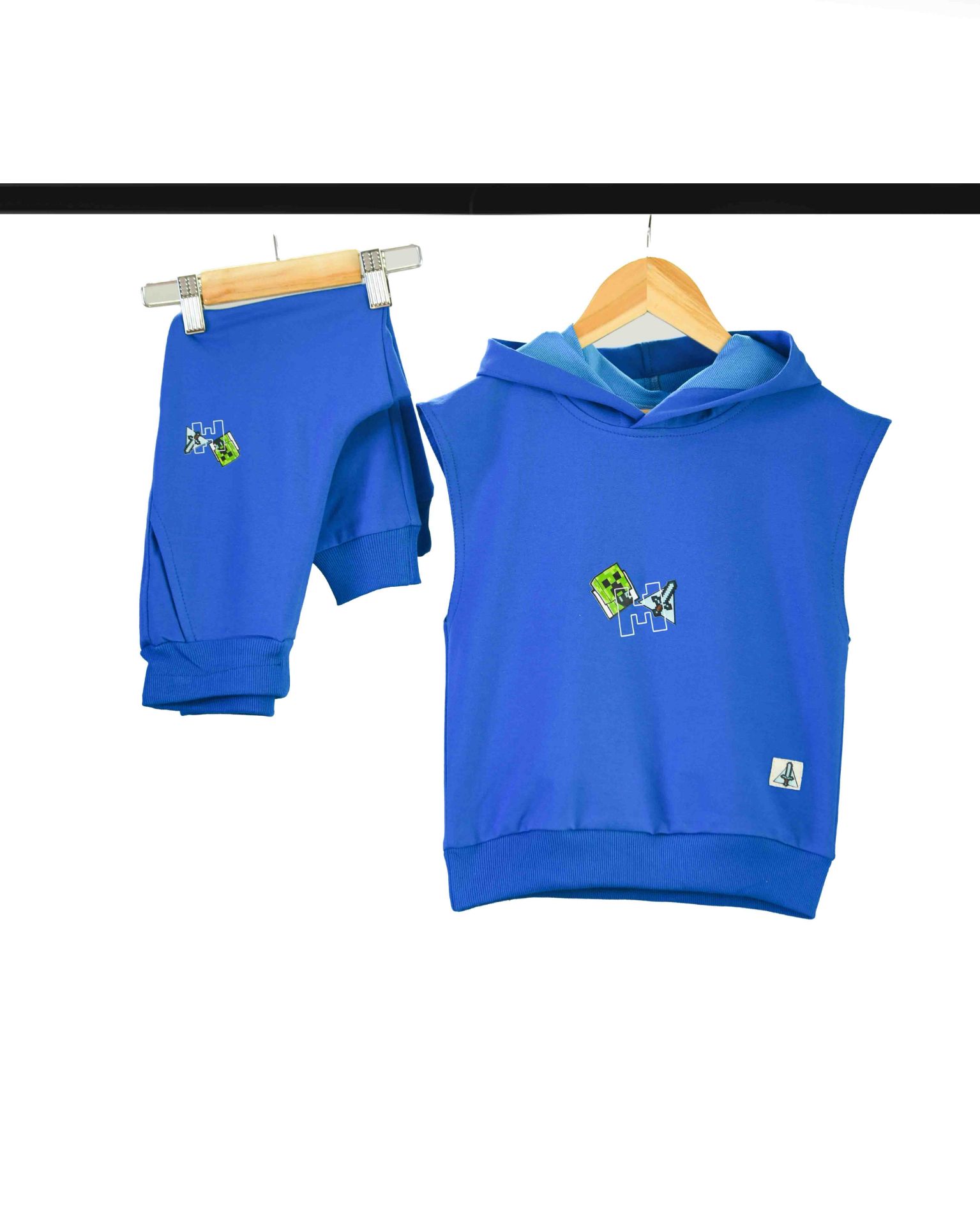 ست جلیقه کلاهدار و شلوار آبی طرح ماینکرافت