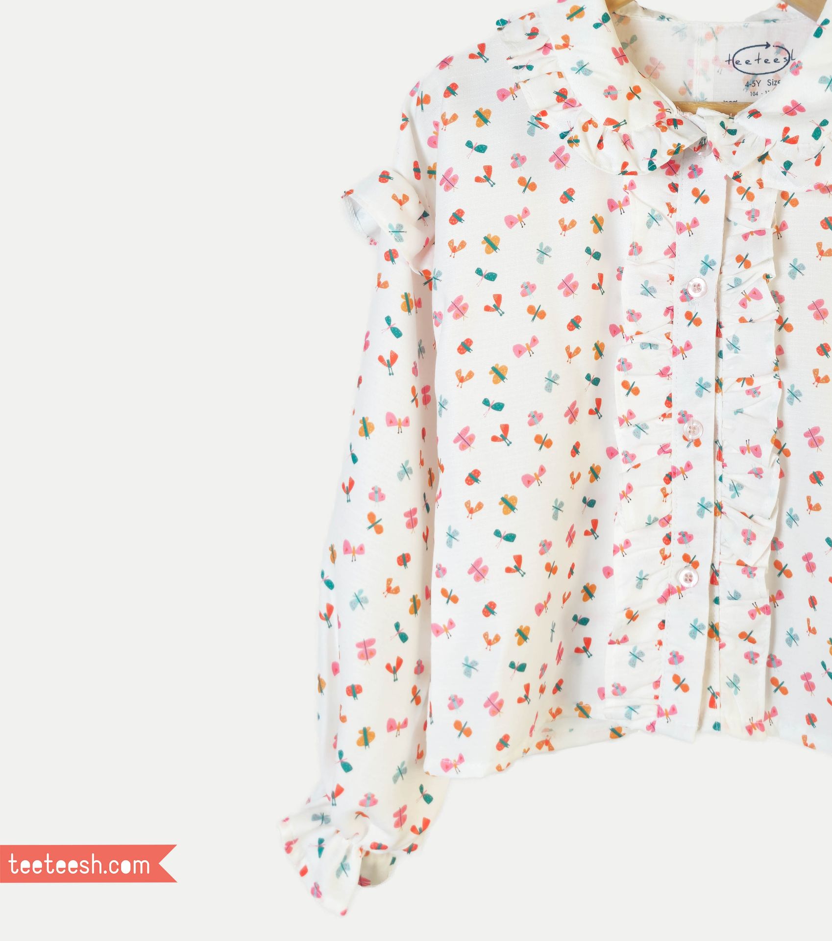 قسمت یقه, سرشانه و جلوی لباس بصورت چیندار کار شده است.