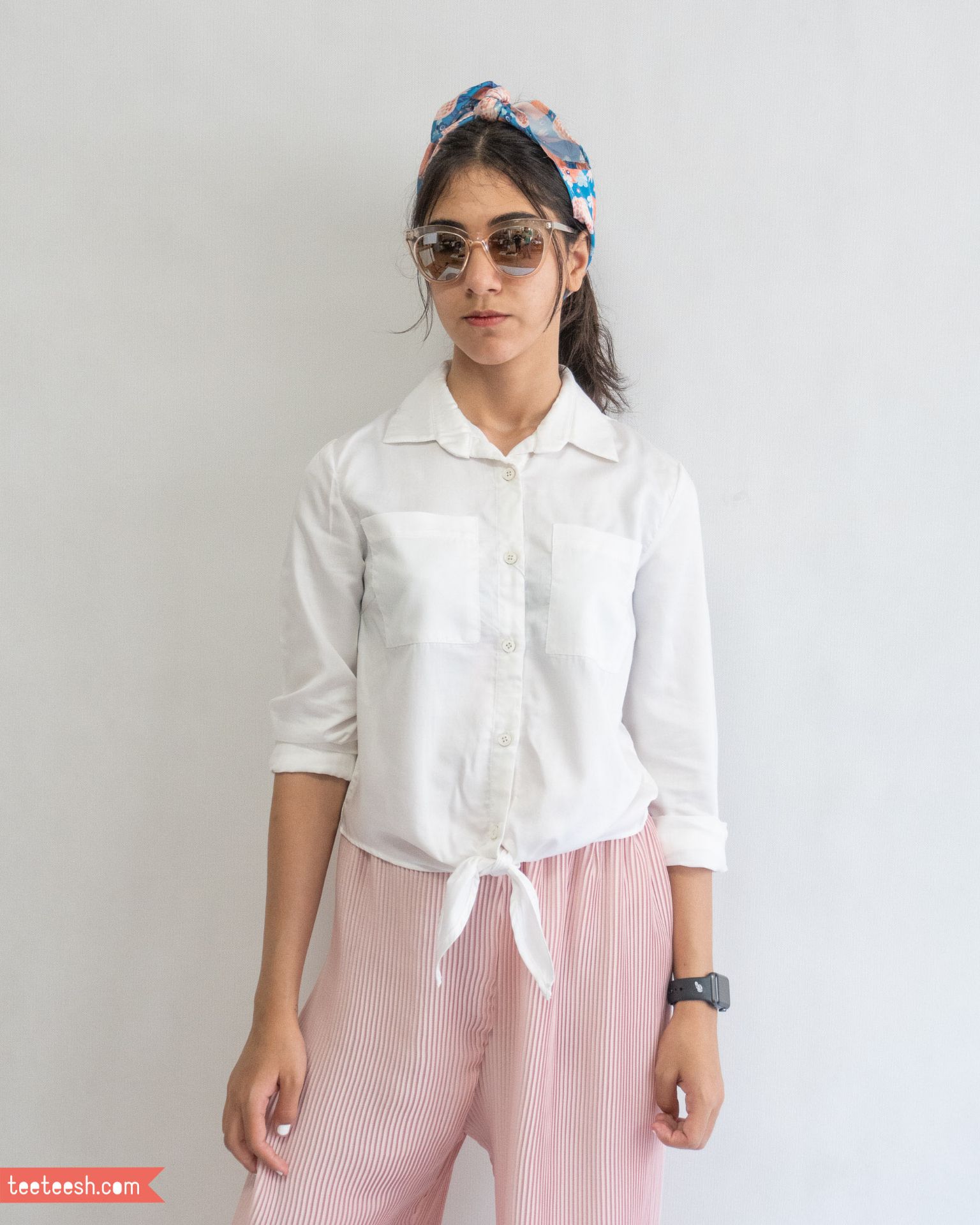 شومیز پوپلین جلو گره دار