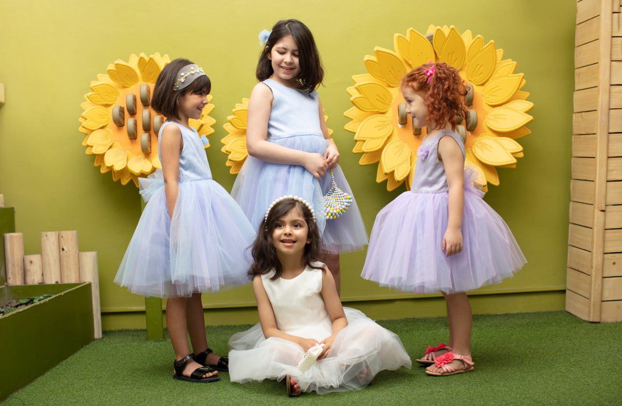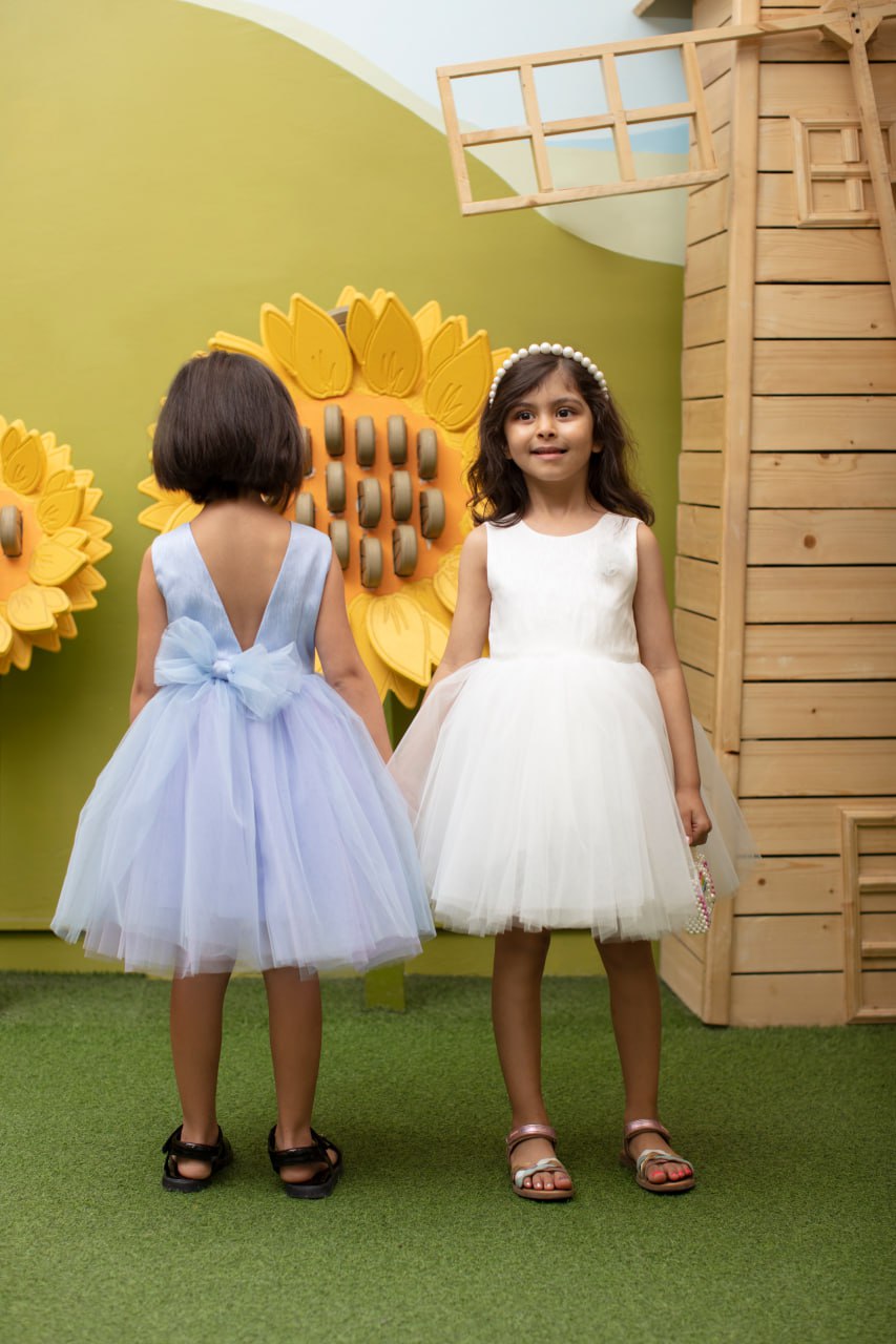 دامن بصورت کاملا پفی از چند لایه تور و آستر دوخته شده و روی آن مروارید پانچی کار شده است