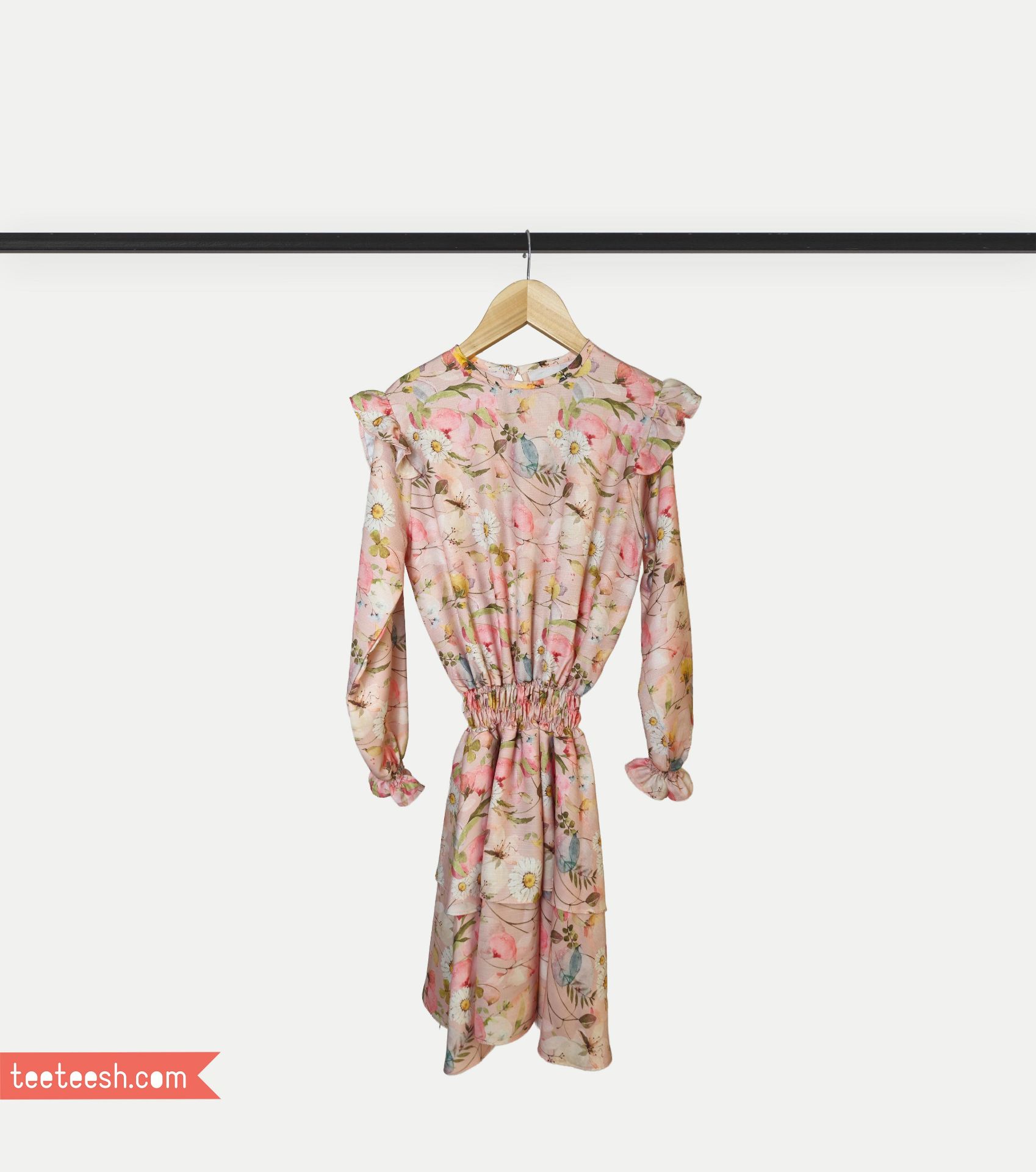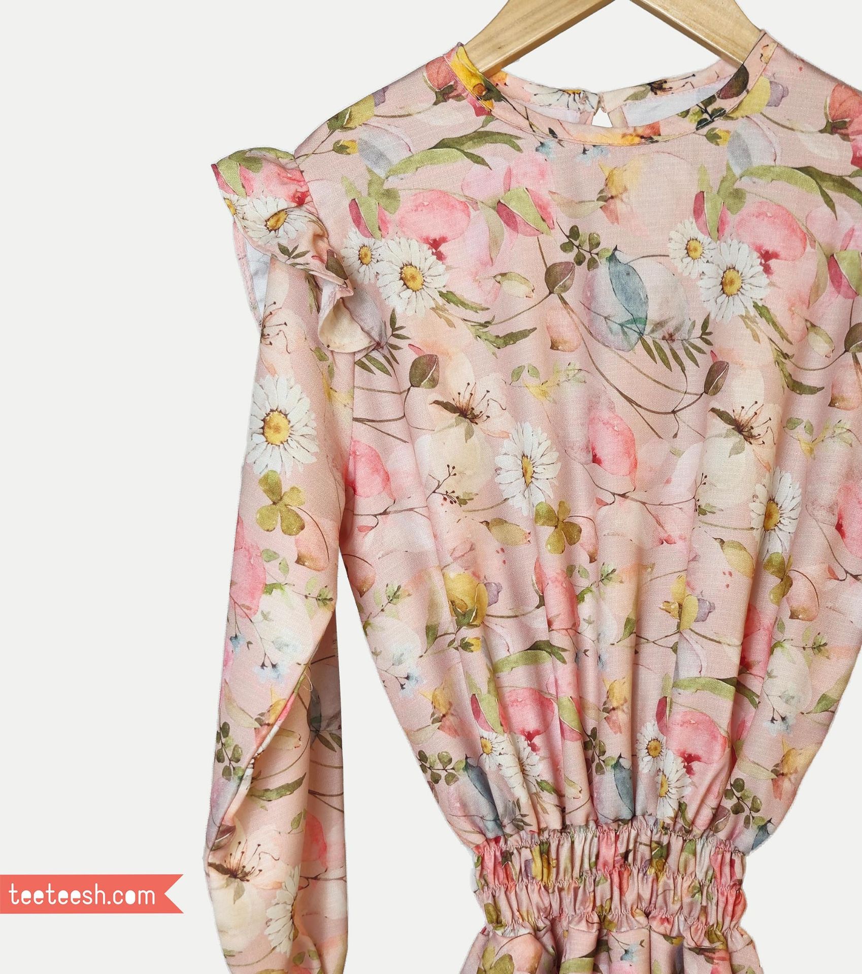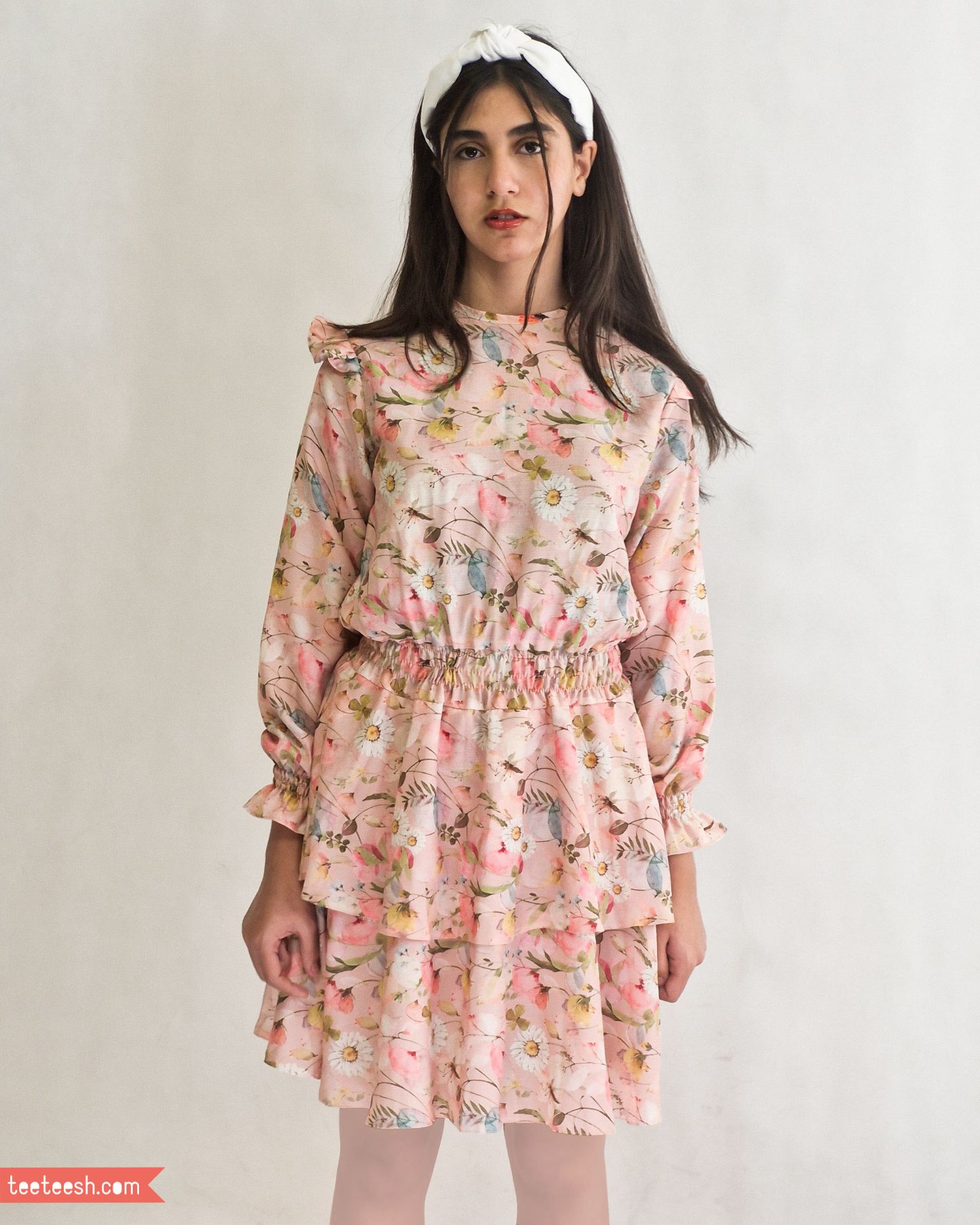 پیراهن کمرکش صورتی گلدار